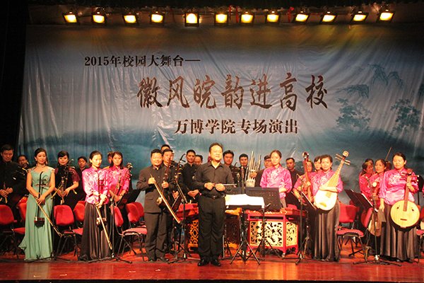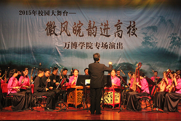 据悉,2015年校园大舞台——徽风皖韵进高校活动由安徽省委宣传部、安徽省教育厅、安徽省文化厅共同主办,活动旨在通过为全省高校师生倾情奉献具有安徽特色的文化演出,展示安徽文化发展的成果,推进高校社会主义核心价值观教育和校园文化建设。(汪启军)