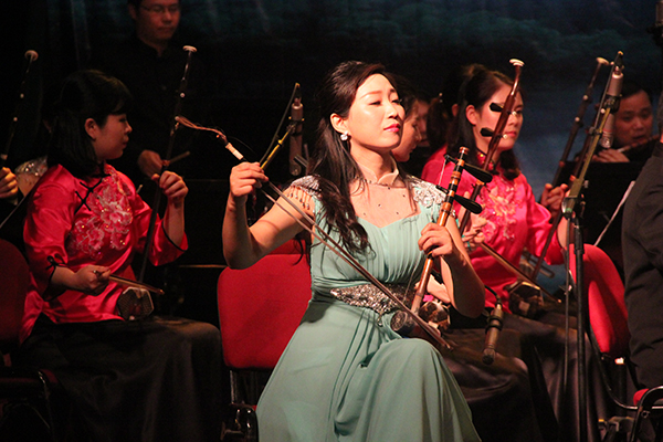 晚上7时整,演出在三声悠远绵长的击磬声中拉开帷幕,来自安徽乐团民族管弦乐团的艺术家们,用笛子、古筝、二胡等民族器乐演奏出一首首经典曲目。本场音乐会指挥由安徽乐团常任指挥徐宏担任。