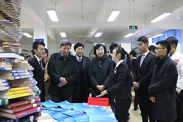 期间,院长江舒,督导专员、院党委第一书记王士明,合肥育仁教育管理有限责任公司总经理、学院副院长陈文达,学院副院长兼管理分院院长刘瑞平等院领导一行也来到图书展展厅,对同学们将展览的书籍用奇思妙想的创意展示出来的做法表示赞赏,详细询问了同学们对图书的要求和看法。最后,学院领导希望图书馆和院团委学生会要发挥好带头作用和引导作用,让更多的学生走进图书馆,多读书、读好书,为建设良好的校风、学风服务。