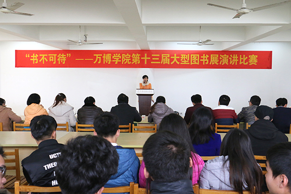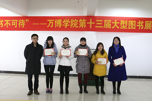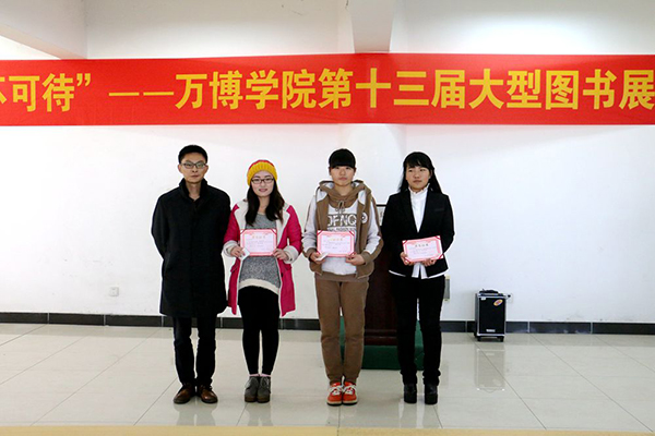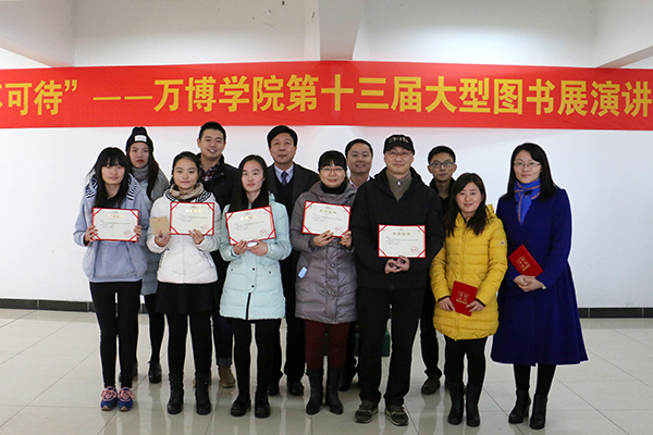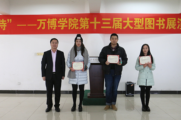 为配合此次图书展活动,还举行了主题为“书不可待”的主题演讲比赛,同学们热情参与,围绕演讲主题或引经据典、或发人深省,在讲台上侃侃而谈,号召同学们在青春时光一定要多读书、读好书,为将来打下坚实的基础,与在场观众产生共鸣。经过激烈角逐,最终由2015级连锁经营管理专业司雯雯同学夺得此次演讲比赛冠军,2015级国际商务专业余莎莎同学、2015级市场营销专业程艳丽同学获得比赛第二名,第三名则由2015级连锁经营管理专业黄永杰同学、2015级汽服自主(1)班孔阿影同学、2015级室内设计专业陈陌柳同学夺得。学院副院长兼管理分院院长刘瑞平、学院宣传部兼继续教育部部长余得高、图书馆馆长陈照强分别为获奖同学颁发了荣誉证书和奖品。