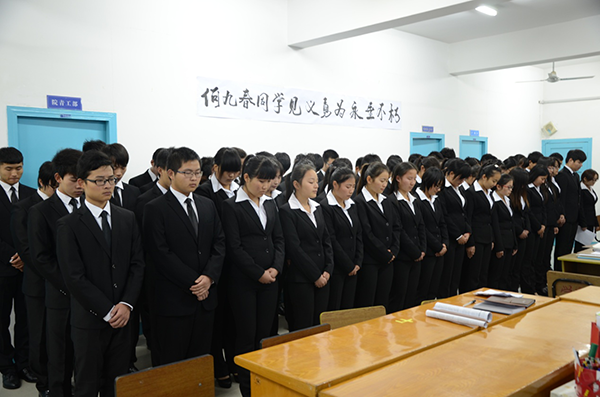 活动中,对何九春同学英勇救人而不幸牺牲的事迹作了详细报告,高度赞扬了其不顾自身安危挺身而出的优秀品质。何九春于2015年9月从西藏昌都武警支队退伍复学至安徽涉外经济职业学院学习,何九春同学在校表现优秀、勤劳、朴实、孝顺,为人中肯,帮助他人不求回报,何九春同学不惜牺牲自己的生命,英勇救人,事迹感人。他以自己宝贵的生命、高尚的行动,践行了社会主义核心价值观,弘扬了中华民族的传统美德,展示了当代青年学生的道德风范和精神风貌。