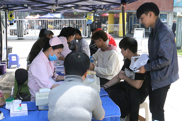 “前几天看到校园很多地方贴出了义务献血的《英雄征集令》宣传画,知道了今天和明天都有义务献血活动, 我以前也献过血,所以就和室友一起过来献爱心,我觉得这样的活动很有意义。”正在填写登记表的一位大一学生告诉记者, 中午一下课就和同学来到这里准备献血。