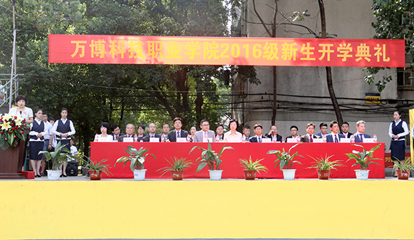 首先,由王宜书记宣布万博科技职业学院2016级新生开学典礼正式开始。随后,激昂的国歌声响起,升国旗,全体起立行注目礼。