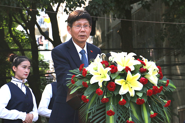 2016级财务管理专业周莹同学作为新生代表在典礼上发言。她表示,来到大学这个新的起点,要尽快适应新的环境,树立远大目标,团结友爱同学,用今天的拼搏成就明天的梦想。(汪启军  大学生通讯社:叶顺、韦能康  )