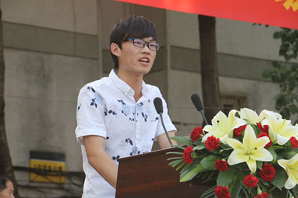 2015级建筑工程管理专业衡孝俭同学作为老生代表在典礼上发言,对新生的到来表示热烈欢迎,并从生活、学习、人生规划等方面对全体新生提出了建议。