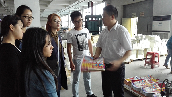 9月28日,2014级视觉传达专业师生来到位于庐阳工业区的安徽联众印刷有限公司,这是一家拥有从前期设计、制作、输出、打样,到中期印刷、装订包装和后期精装成型一体化的生产线。同学们在工作人员的带领下,体验了电脑设计图纸和设计成品的整套生产过程。