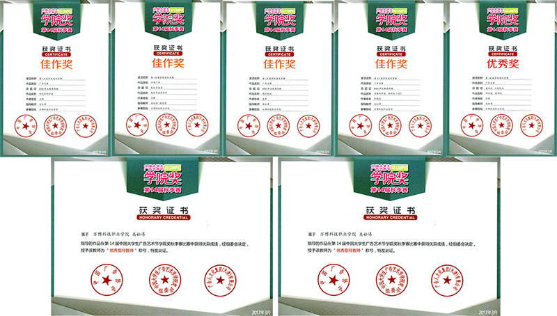 学院奖秋季赛自2016年9月20日启动后,我院艺术分院相关专业师生积极备战,在指导老师的帮助下创作并提交了参赛作品216件,达到历年来参赛提交作品最多数量。最终,2015级广告设计与制作自主班方蓓荣获大赛优秀奖以及佳作奖,2014级广告设计与制作专业沈蝶、2015级广告设计与制作专业吴琴、2016级广告设计与制作专业张晚迎分别荣获秋季赛佳作奖。