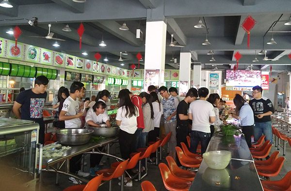 5月24日上午9时,理工分院学生会全体聚集鼎盛食堂一楼,开始有条不紊的为活动做各项准备工作,食材准备就绪后,包粽子活动正式拉开帷幕。学干们将手中的粽叶圈成漏斗形状,然后填入满满的糯米,并辅以绿豆、蜜枣等美味食材,尽管手法生疏,但同学们热情高涨,看着一个个娇俏的粽子新鲜出炉,整个食堂弥漫在同学们的欢声笑语之中。