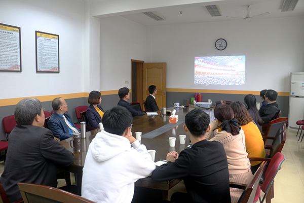 10月18日上午,中国共产党第十九次全国代表大会在北京人民大会堂隆重召开,习近平总书记代表十八届中央委员会向大会作报告。上午9时,院长王士明,督导专员、院党委书记王宜,副院长、院党委副书记刘瑞平,院长助理耿瑜以及党支部书记,学生党员代表齐聚行政楼3楼会议室观看党的十九大开幕式直播,在广大师生中引起热烈发响。