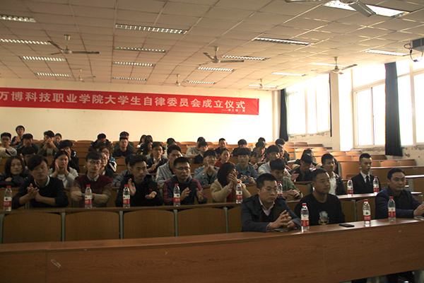 首先,由学工部副部长李春山宣布万博科技职业学院自律委员会正式成立,并宣读第一届自律委员会成员名单。