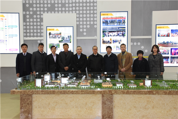 周华盛董事长一行首先参观了位于学院图书馆一楼的展厅,参观了学院的发展历史、学子风采、校园生活、学生作品等展板,重点了解了学院新桥校区的基本概况、发展目标、建设进度以及远景规划等情况。
