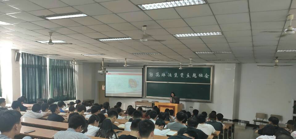 学院还邀请辖区井岗派出所民警来我院作防范非法集资和诈骗为主题的讲座,500余名师生到场学习;组织了一次防范非法集资横幅签名活动,倡导大学生远离非法集资,近百名师生参与;各班组织了防范非法集资宣传月主题班会,将非法集资宣讲到位,基本实现了全员覆盖的目标。