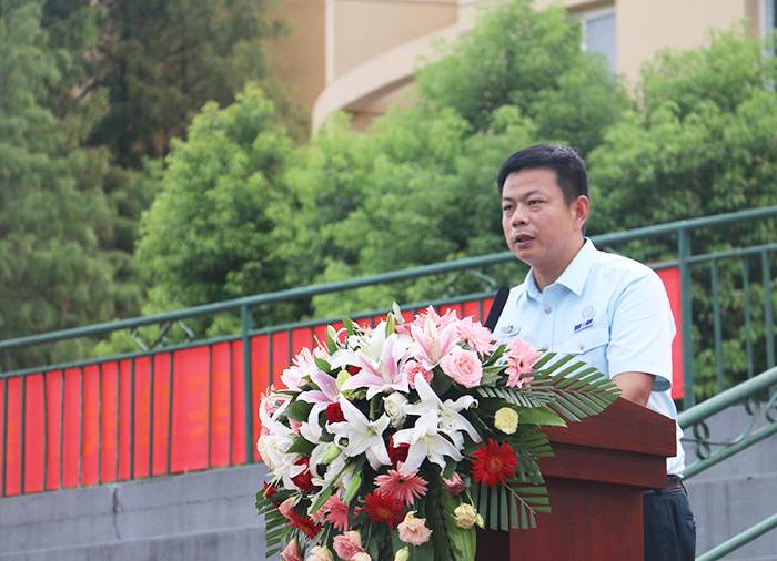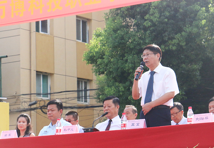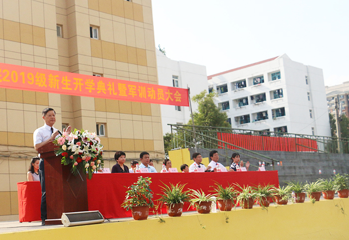 会上,孙中义发表了热情洋溢的讲话,代表全校师生员工向2019级新生表示欢迎和祝贺。他介绍了学校历史、专业特色及办学成就,同时希望同学们能够珍惜军训的机会,在军训期间,按照教官的要求,听从指挥,服从命令,刻苦训练,不怕吃苦,不怕流汗,以饱满的热情和昂扬的斗志,全身心地投入到火热的军训中去。同时,也希望各位同学、辅导员和教官们注意安全,劳逸结合,确保军训平安顺利。