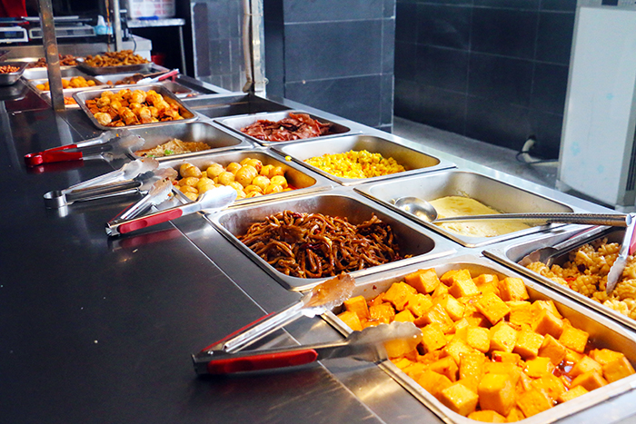 装修一新的学校食堂整洁明亮,一楼主营大众饭菜,包含教职窗口、韩国料理、特色面食、快餐小吃等;二楼为美食广场,包含南北菜系、特色炒菜、自助餐、麻辣烫等,各具特色的八方美食,汇聚于此。