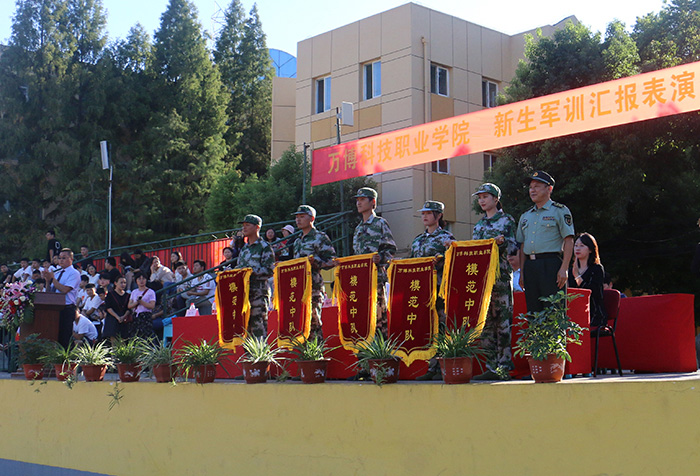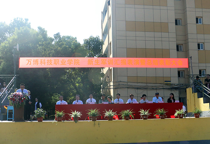 王宜宣布万博科技职业学院2019级新生军训汇报表演暨总结表彰大会开始!