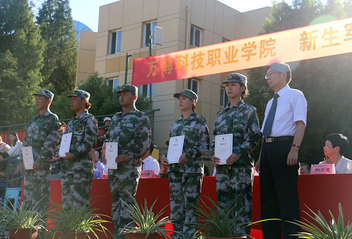 刘文慧宣读了军训获奖个人和集体名单,王宜、孙中义、张汉田分别为他们颁发了奖状或荣誉证书。