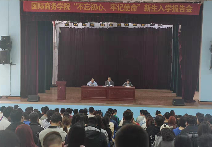 秋风送爽,丹桂飘香,又是一年丰收季。经历了紧张而又充实的军训之后,2019年10月9日,国际商务学院2019级新生入学教育报告会在报告厅正式召开。国际商务学院副院长徐家骅,国际商务学院党支部书记、教学秘书汪慧、学工助理黄吉胜以及2019级全体新生参加了本次大会。 报告会由学工助理黄吉胜老师主持。