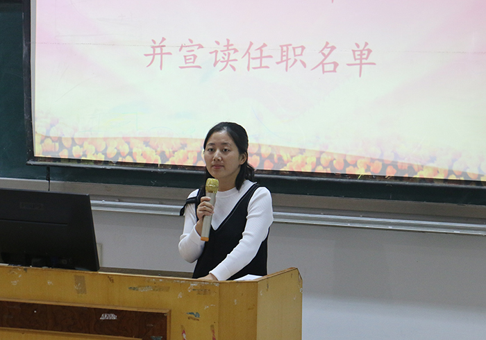 大会在团歌声中拉开了序幕。院长苏仕华致词后,团总支学生会书记王巧玉作会上发言,并宣读了新一届任职名单。