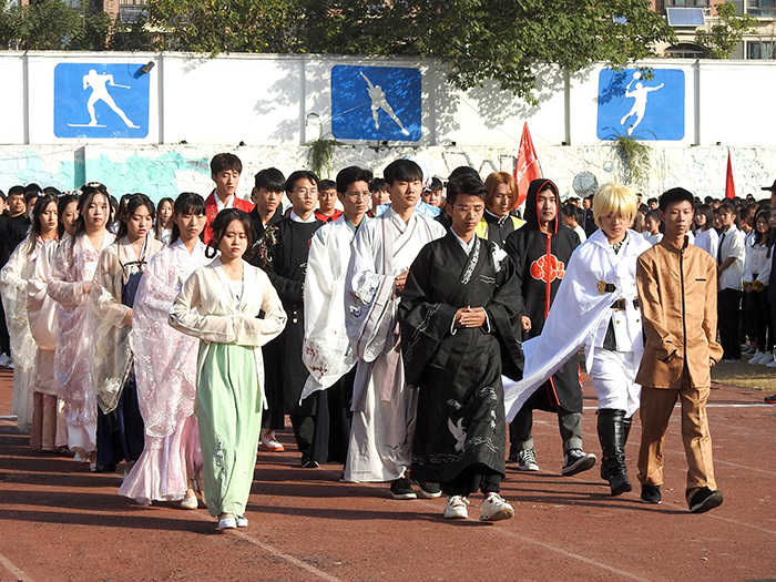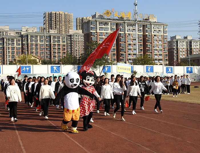 8时30分,伴随着欢快的音乐及解说,以国旗、校旗、会徽、会标、彩旗等组成的方阵首先入场,紧跟其后的是才艺表演方阵、裁判员方阵、教工方阵以及各学校运动员方阵,他们以稳健的步伐,嘹亮的口号,各具特色的服装道具彰显了朝气蓬勃、积极进取的精神风貌。在主席台前,他们结合专业特色,进行了简短而极富创意的文艺表演,赢得主席台领导和全场师生的阵阵喝彩。