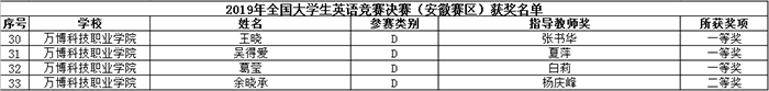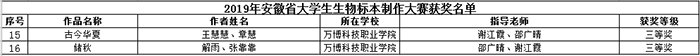 2019年安徽省大学生学科和技能竞赛部分赛事我校获奖一览表