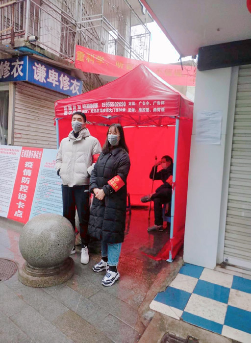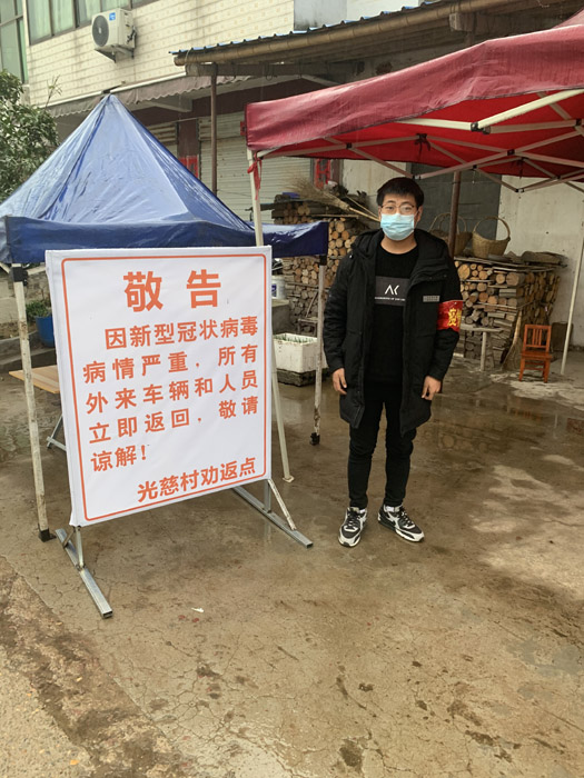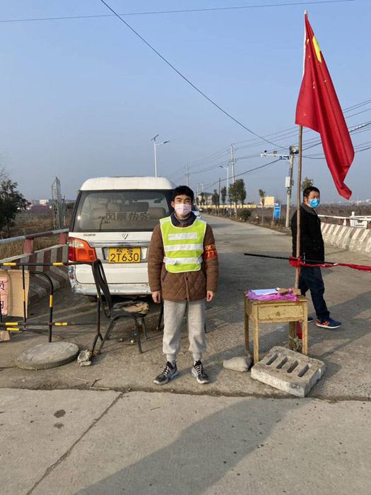 舒舰洋,我校2018建设工程管理专业学生,入党积极分子。在抗击疫情时期,积极响应当地政府的号召,自愿加入安徽省宣城市泾县桃花潭镇宝峰村志愿者组织。协助村干部、书记登记各村庄来往人员信息,做好疫情宣传工作,在村里路口设点检查,排查车辆、对来访人员进行信息登记、体温测试、发放居民出入证及站岗值勤等,并禁止外来人员进入本村。