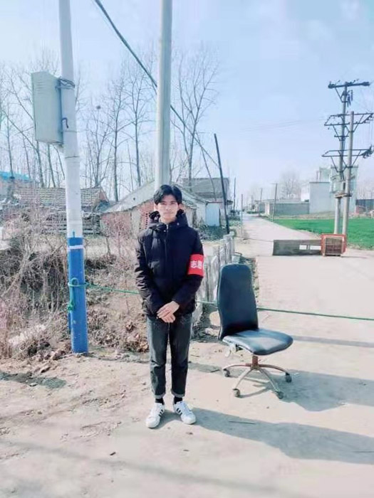 兰强,我校2018级室内设计专业学生。在防控工作的关键时期,兰强同学自愿向所在居住社区报名,加入了亳州市利辛县马店孜镇东门社区兰寨村路口的抗疫队伍,主要负责在村庄出入口防疫检测点处站岗,协助当地工作人员劝阻外来人员进入,并对外来人员进行体温检测和杀毒,并劝说社区居民不能随便外出,同时进行疫情宣传及协助村委会接送病人等工作。