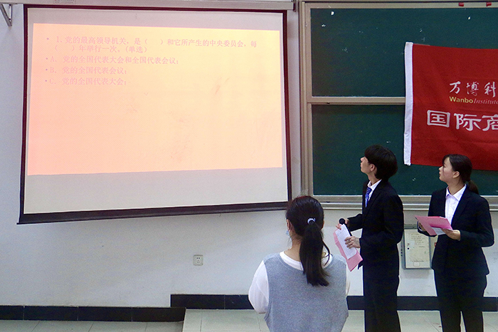 为推进党团工作的深入开展,加强党团员对党史团史的了解,增强我院青年后备军的政治素养和理论知识,提高同学们的主观能动性,丰富同学的精神文化生活,6月10日下午3点,,国际商务学院党支部、国际商务学院团总支学生会在3202教室联合举办第一届党团知识竞赛。国际商务学院党支部书记、团总支书记汪慧,学院学工助理黄吉胜,学院党支部教师和辅导员参加了本次竞赛,因疫情原因,为避免现场人员聚集,本次活动仅限18、19级各班班委到场观赛。