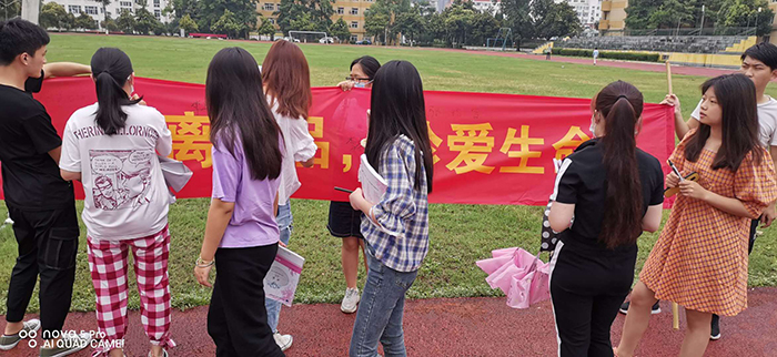 为深入贯彻习近平总书记关于禁毒工作的系列重要指示精神,认真落实国家禁毒委员会《关于加强新时代全面禁毒宣传教育工作的指导意见》精神,坚持关口前移、预防为先,持续开展青少年毒品预防教育,校团委于6月16日、17日在校园内开展“远离毒品、珍爱生命”签名活动。