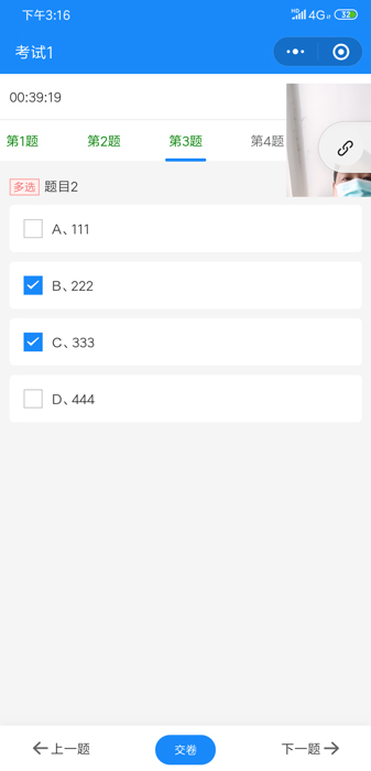 考生在候考页面中排到了考试,页面上显示可以考试时,点击“开始考试”即可进入考试页面,在考试开始前,系统要求考生必须进行人脸识别身份验证,按照系统提示操作即可,考试的试卷题目为随机抽取,请认真作答,考试结束后点击“交卷”也必须要再做一次人脸识别身份验证,按照系统提示操作即可;
