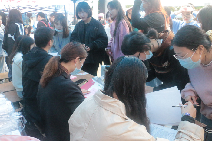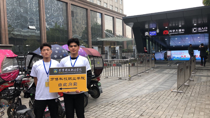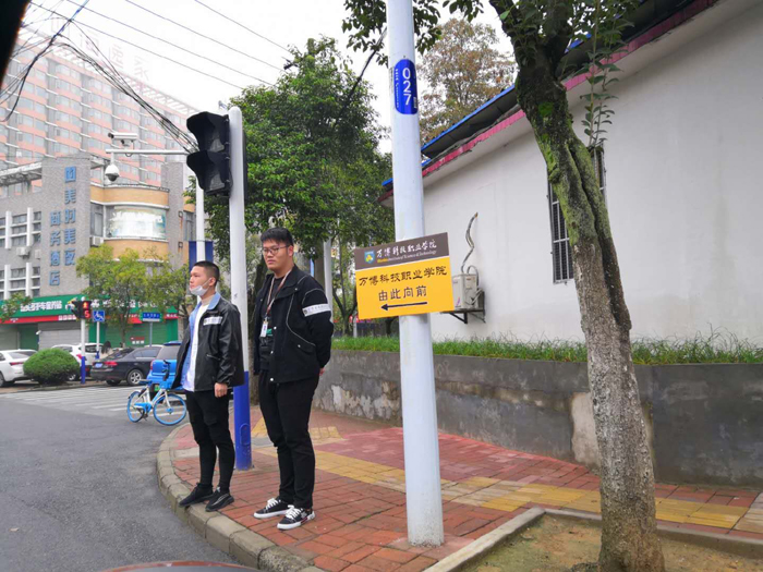 在地铁站、学院附近各路口都有志愿者在那里站岗,风雨无阻,只为刚来报到的学生指引道路,一路陪同,帮助他们搬运行李、注册报到、登记入住、解答疑惑,将学长学姐曾经给予的温暖传递下去。