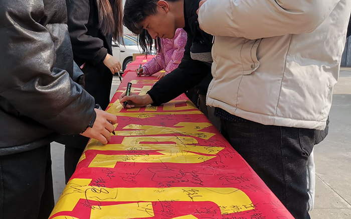 为端正考风考纪,营造良好的考试氛围,2021年1月4日中午,交通工程学院团总支学生会在教学一号楼门前开展了“诚信学习,诚信考试”横幅签字活动。