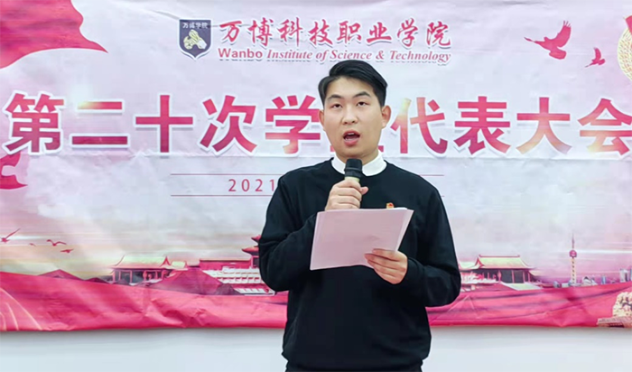 在我校上下深入学习贯彻党的十九届六中全会精神和省第十一次党代会精神之际,11月24日,万博科技职业学院第二十次学生代表大会在学校阶梯教室隆重召开。合肥市学生联合会驻会执行主席罗震海,督导专员、校党委书记汤增产,校长孙中义,督导长张彤玉,副校长耿瑜,副校长马赞,以及学工部部长、各二级学院院长、党支部书记、团总支书记等出席大会。开幕式由校团委副书记王媛媛主持。