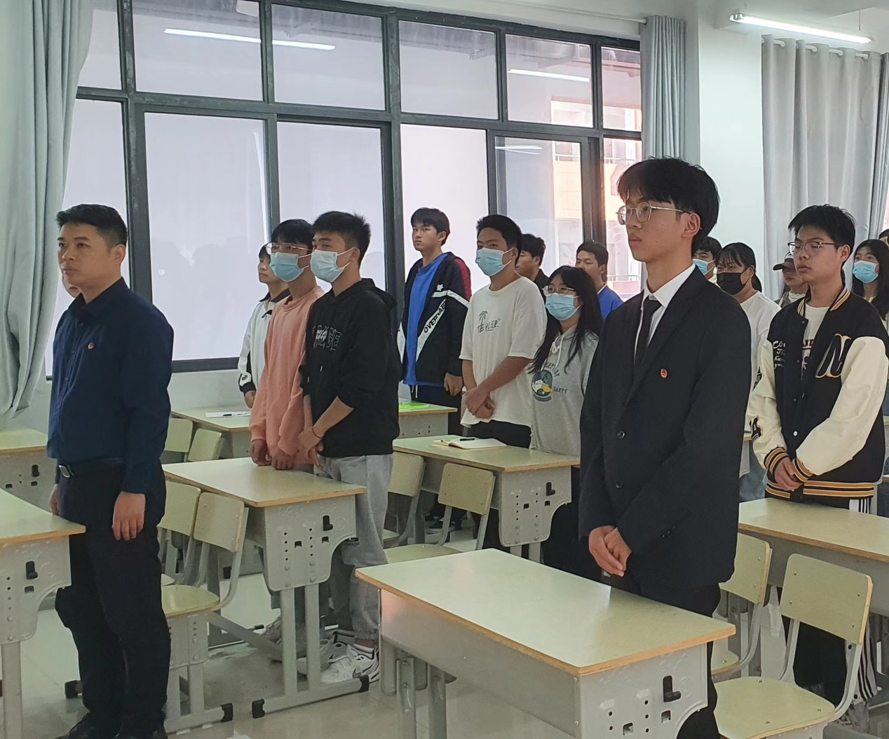 国际商务学院党支部于10月16日上午10点,在2401教室组织学院党员、团干、学干、班干以及青年学生采用集中和分散结合的方式,共计约300人共同观看党的二十大开幕会直播。大会开始,全体起立,奏唱国歌,在党支部书记司斌斌的带领下,同学们精神饱满高唱国歌。而后,全体师生怀着崇敬的心情为已故老一辈无产阶级革命家和革命先烈默哀。