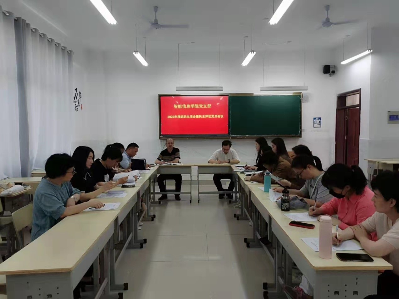 为深入学习贯彻党的二十大精神,激励支部党员同志坚定理想信念,牢记初心使命,4月19日,智能信息学院党支部在1205教室召开2022年度组织生活会暨民主评议党员大会。会议由党支部书记唐中海主持,支部全体党员参加会议。校党委委员、副校长马赞到会指导。