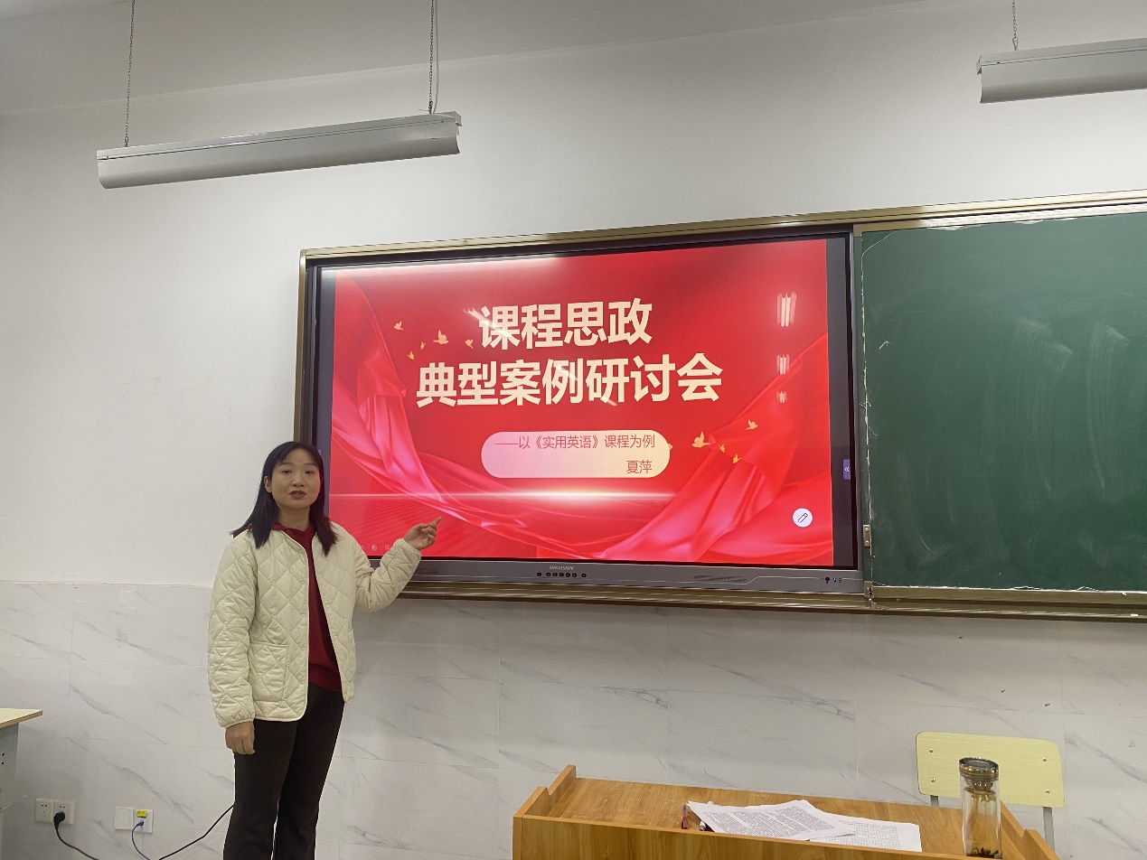 随后,夏萍老师和李想老师相继分享了“课程思政”建设经验,夏萍老师围绕公共英语课程教学中怎样融入课程思政,如何设计教学主题、如何体现英语课程中的育人元素,如何提高课程思政的教学实效等方面展开了深入讨论。李想老师围绕在大学语文教学中“将哪些思政元素融入课程”、“以什么形式融入”等问题展开,提出自己的意见和建议。
