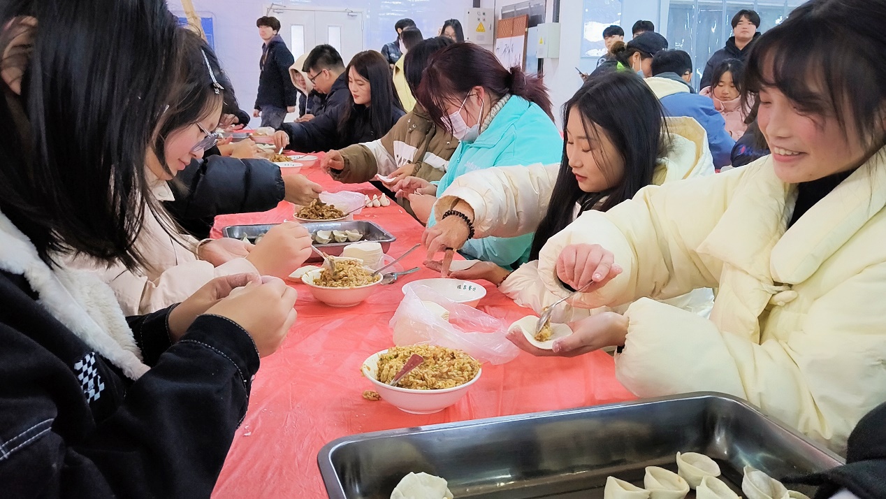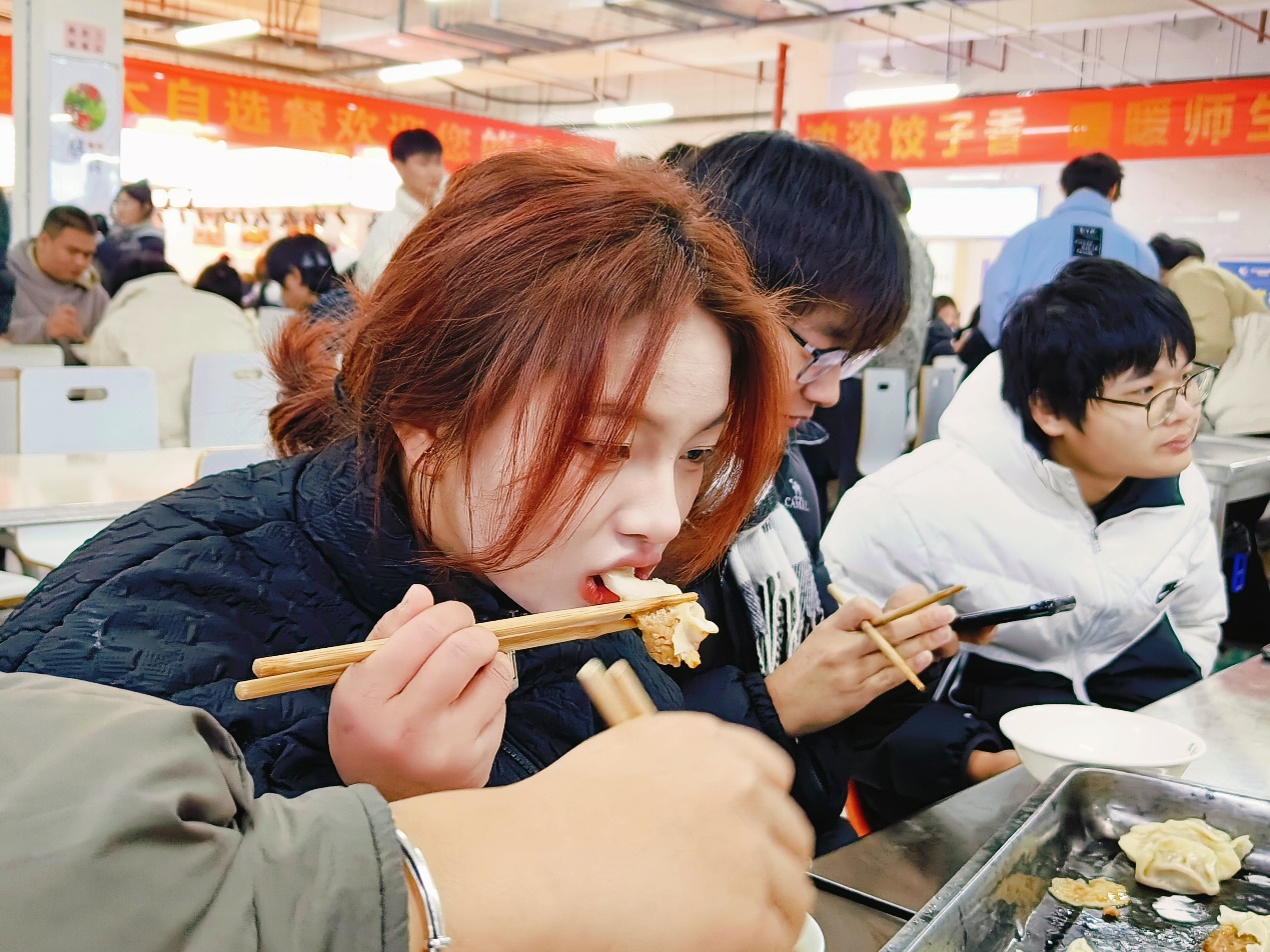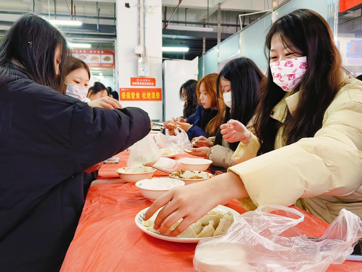 人多力量大,在师生的共同努力下,热气腾腾的饺子终于端上餐桌。吃着自己亲手包的饺子,同学们脸上洋溢着幸福和自豪。在同学们开怀的笑容里,寒冷的冬日仿佛也开始逐渐升温。活动现场处处洋溢着祥和欢乐的节日气氛,充满了“家”的味道。