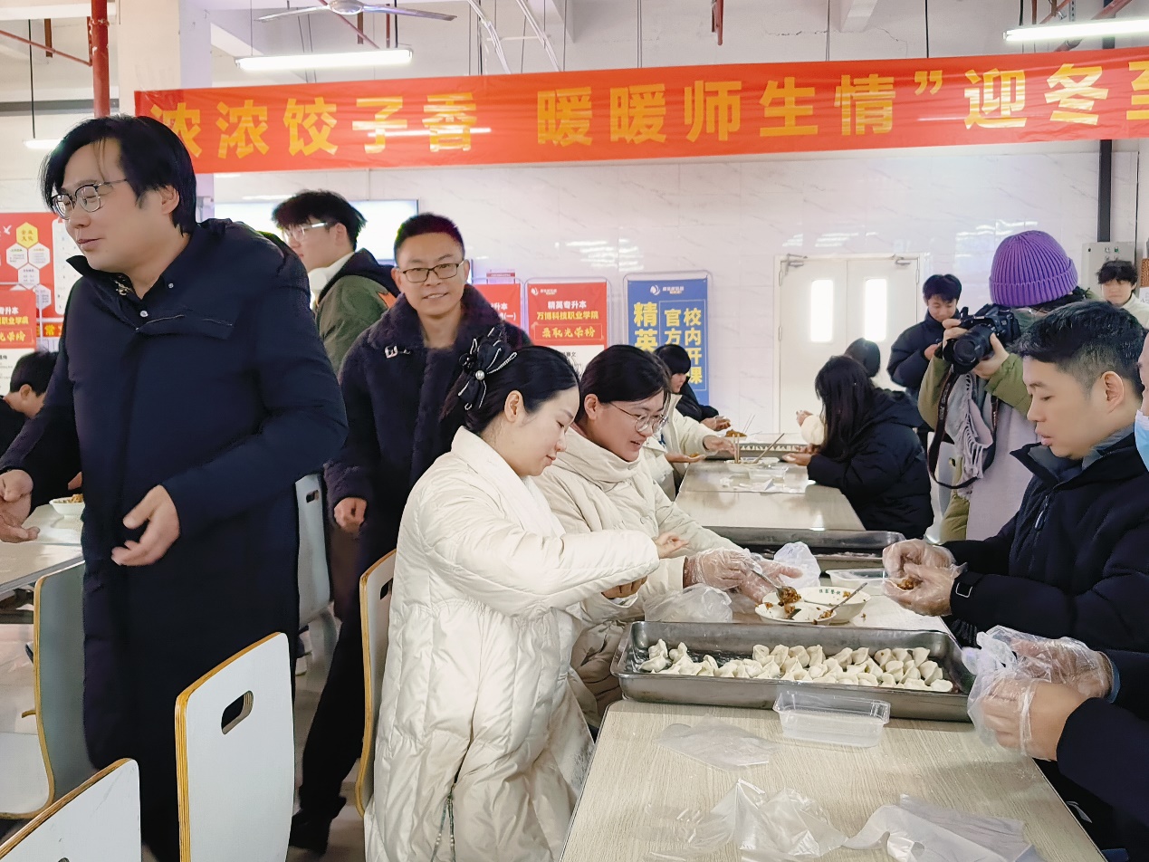 为进一步弘扬中华民族优秀传统文化,让师生在温暖祥和的氛围中迎接冬至的到来,12月22日,我校工会、团委在食堂联合举办了“浓浓饺子香,暖暖师生情”迎冬至包饺子活动。
