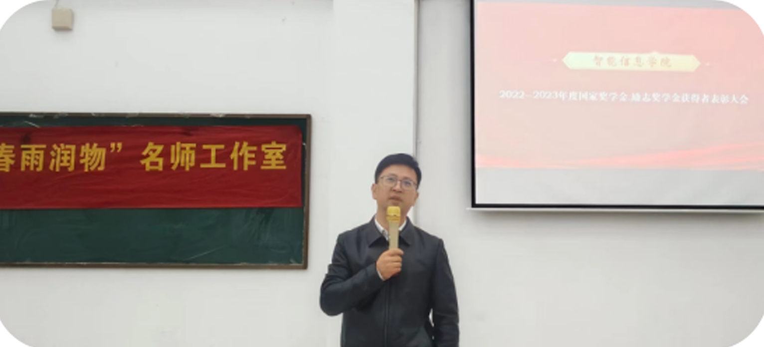 为表彰2022-2023学年度荣获国家奖学金和励志奖学金的获得者,近日,智能信息学院“春雨润物”辅导员名师工作室组织举行国家奖学金与励志奖学金的颁奖仪式。智能信息学院党支部书记唐中海,“春雨润物”辅导员名师工作室项目主持人盛婷婷,智能信息学院团总支书记王巧玉,辅导员张淑惠、韩乔乐及智能信息学院各班级班委参加了此次颁奖仪式。
