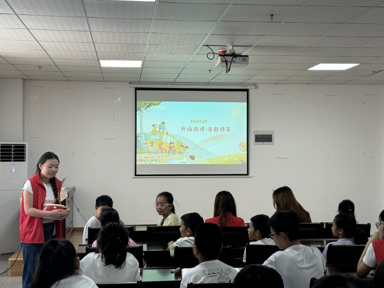 活动开场,一场热闹的破冰游戏瞬间点燃气氛。实践队员们带领孩子们玩起“击鼓传花”、“逛三园”等趣味游戏。此起彼伏的欢声笑语中,初见的拘谨悄然消散,友谊的种子在轻松愉快的互动里悄然播下。