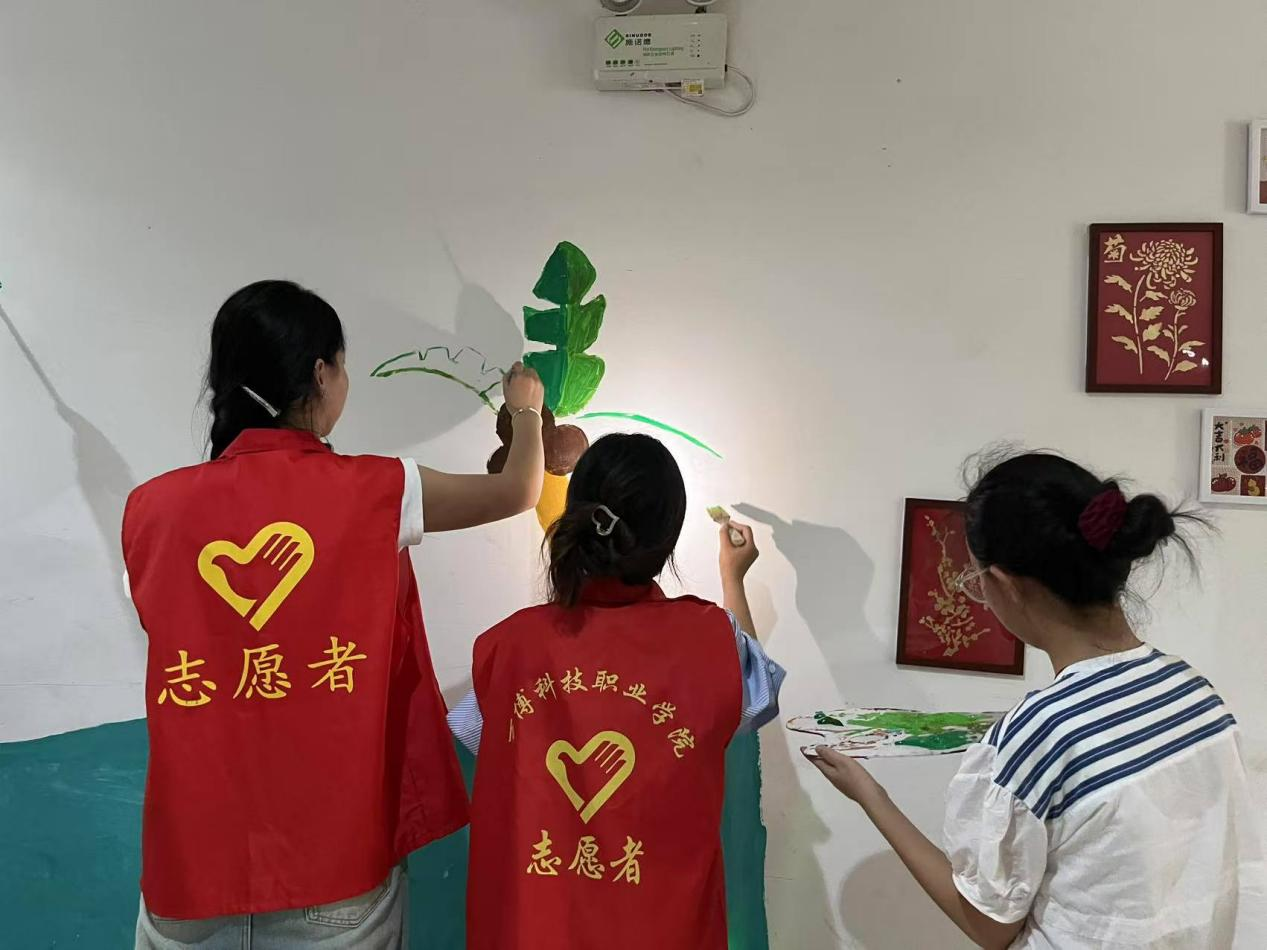 “我是小小彩绘师”环节,社区墙面变身巨大“创意画布”。孩子们围在调色盘旁,小手蘸满斑斓颜料,眼中闪烁着兴奋的光芒。在志愿者耐心协助调和色彩、扶正画笔下,童真的想象在墙面上恣意挥洒。孩子们清脆的笑声裹着淡淡的颜料清香,在空气中弥漫,仿佛将最明丽的夏日色彩都揉进了社区的风景里。