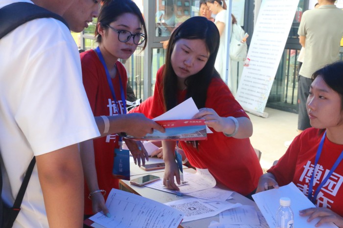 为方便新生更安全、更便捷抵达校园,学校团委提前部署,在合肥火车站、汽车站安排志愿者引导到校路线;在学校大门入口,保卫部精密安排,人车分流,极大地方便新生家长接送;更有学生志愿者们早早到位,身着“博园青年”服装,主动接过新生手中的行李,指引报到流程。各二级学院于图书馆广场设置报到处,核对报到信息材料。此外,各报到处设置了党员服务通道,为新生入校服务添砖加瓦。