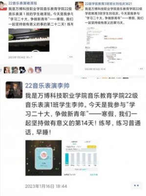音乐教育学院团总支开展“学习二十大 争做新青年”寒假打卡活动为深入学习贯彻党的二十大精神,践行服务同学根本宗旨,音乐教育学院团总支学生会开展了“学习二十大,争做新青年”寒假打卡活动。